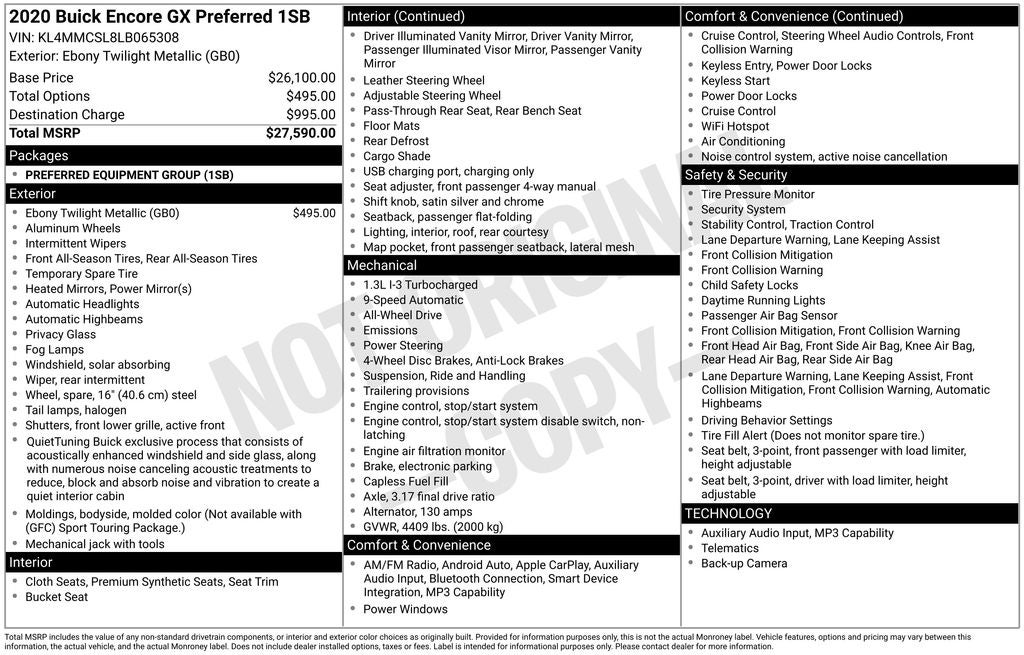 - Vehicle Name: Buick Encore GX