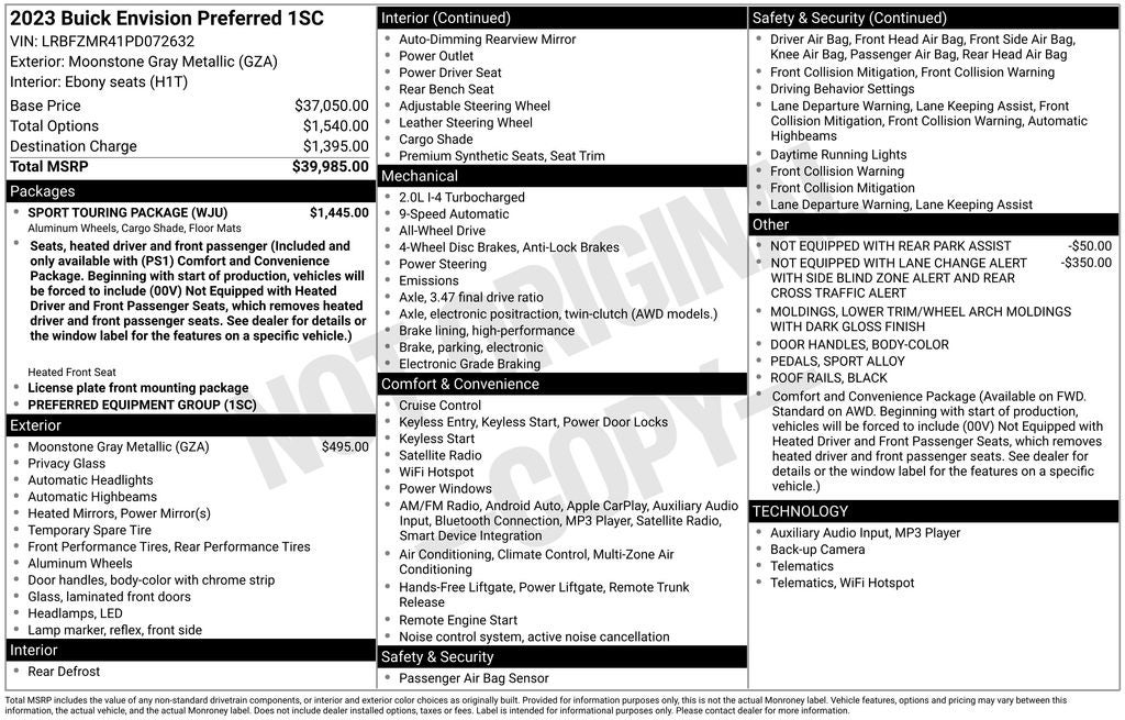 - Envision Driver Confidence includes (PDC) Buick Driver Confidence (Includes (UKC) Lane Change Alert with Side Blind Zone Alert and (UFG) Rear Cross Traffic Alert on vehicles built before October 10, 2022. Beginning October 10, 2022, certain vehicles will be forced to include (00S) Not Equipped with Lane Change Alert with Side Blind Zone Alert and Rear Cross Traffic Alert, which removes Lane Change Alert with Side Blind Zone Alert and Rear Cross Traffic Alert. Beginning with start of production, vehicles will be forced to include (00Y) Not Equipped with Rear Park Assist, which removes Rear Park Assist. See dealer for details or the window label for the features on a specific vehicle.)