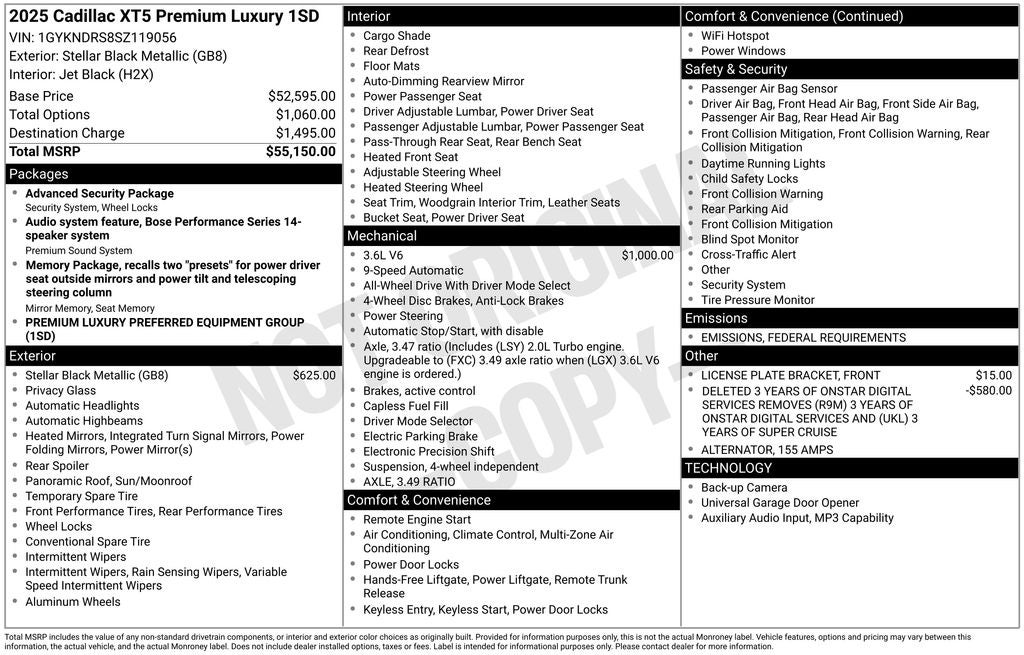 - Cadillac user experience with embedded navigation, AM/FM stereo with connected navigation providing real-time traffic, 8" diagonal color information display, 4 USBs, 2 auxiliary power outlets, personalized profiles for each driver's settings, Natural Voice Recognition, Phone Integration for Wireless Apple CarPlay/Wireless Android Auto capability for compatible phone, Connected Apps and Teen Driver